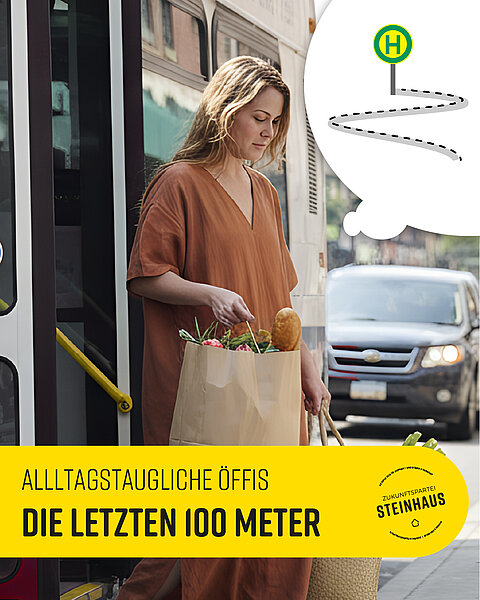 Zum Beispiel ein Lebensmittelnahversorger mit Vollsortiment. Wenn es in Steinhaus keinen solchen Nahversorger gibt, dann müssen wir gemeinsam dafür sorgen, dass unsere Bevölkerung einfach und bequem mit öffentlichen Verkehrsmitteln zu einem Nahversorger kommt.